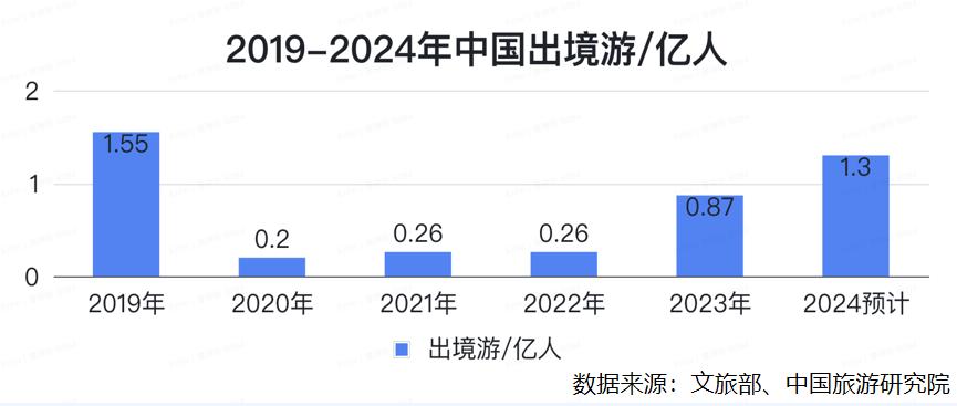 中国文旅部发布的数据显示,2023年,中国国内出游人次48.91亿,比上年同期增加23.61亿,同比增长93.3%,出境旅游人数超过8700万人次,对比2022年迅速提升。
