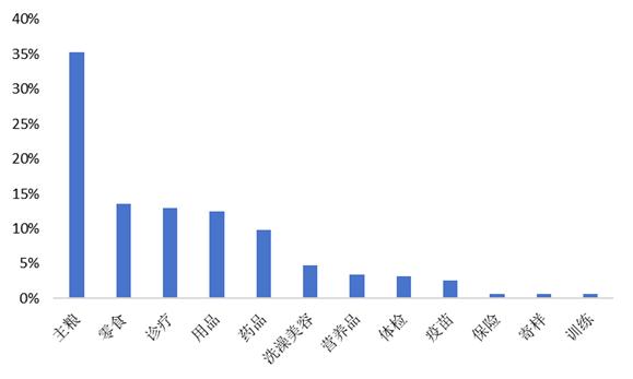 这些数据表明,宠物主粮仍然是宠物食品市场的主要组成部分,但零食和营养品的市场份额也在逐步提升。