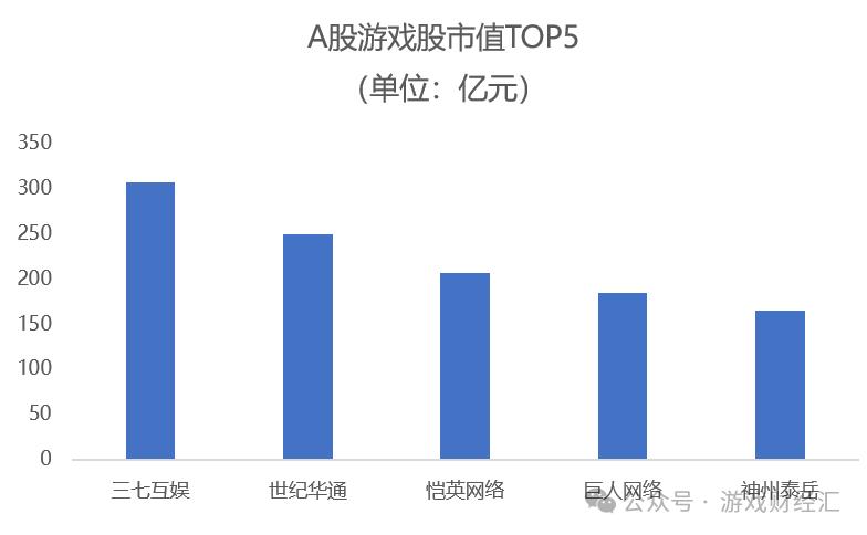 按市值来看,目前三七互娱登顶,市值超300亿元,世纪华通位列第二,恺英网络第三,巨人网络和神州泰岳分别位列第四、第五。