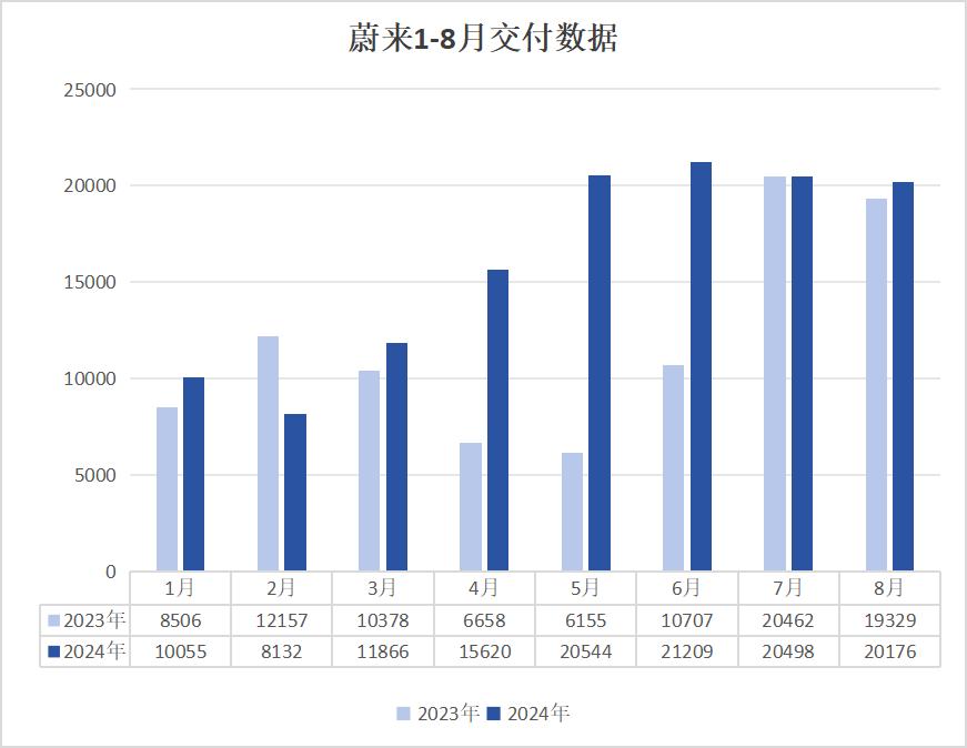 此外,在7月和8月,蔚来的交付也分别达到了20498辆和20176辆汽车。