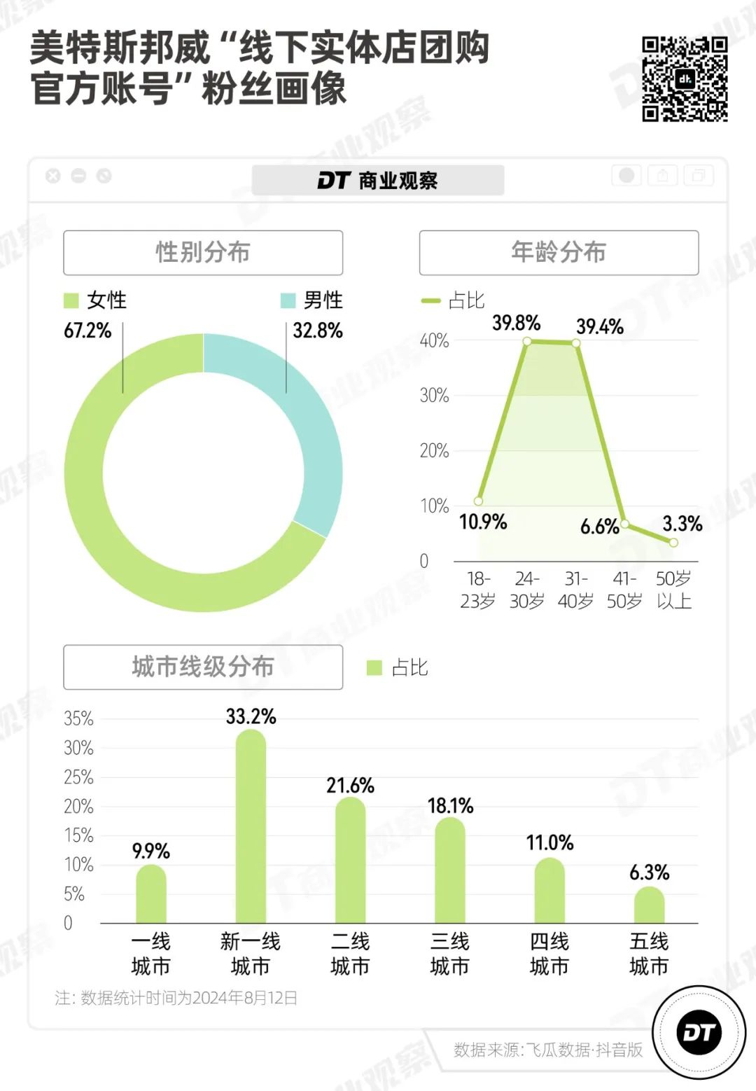 在本地生活业务中,消费者所在城市与门店所在地有较强关联性,在美特斯邦威团购券可适用的80家门店中,超6成门店位于新一线城市和二线城市,这与美特斯邦威的粉丝画像相符。