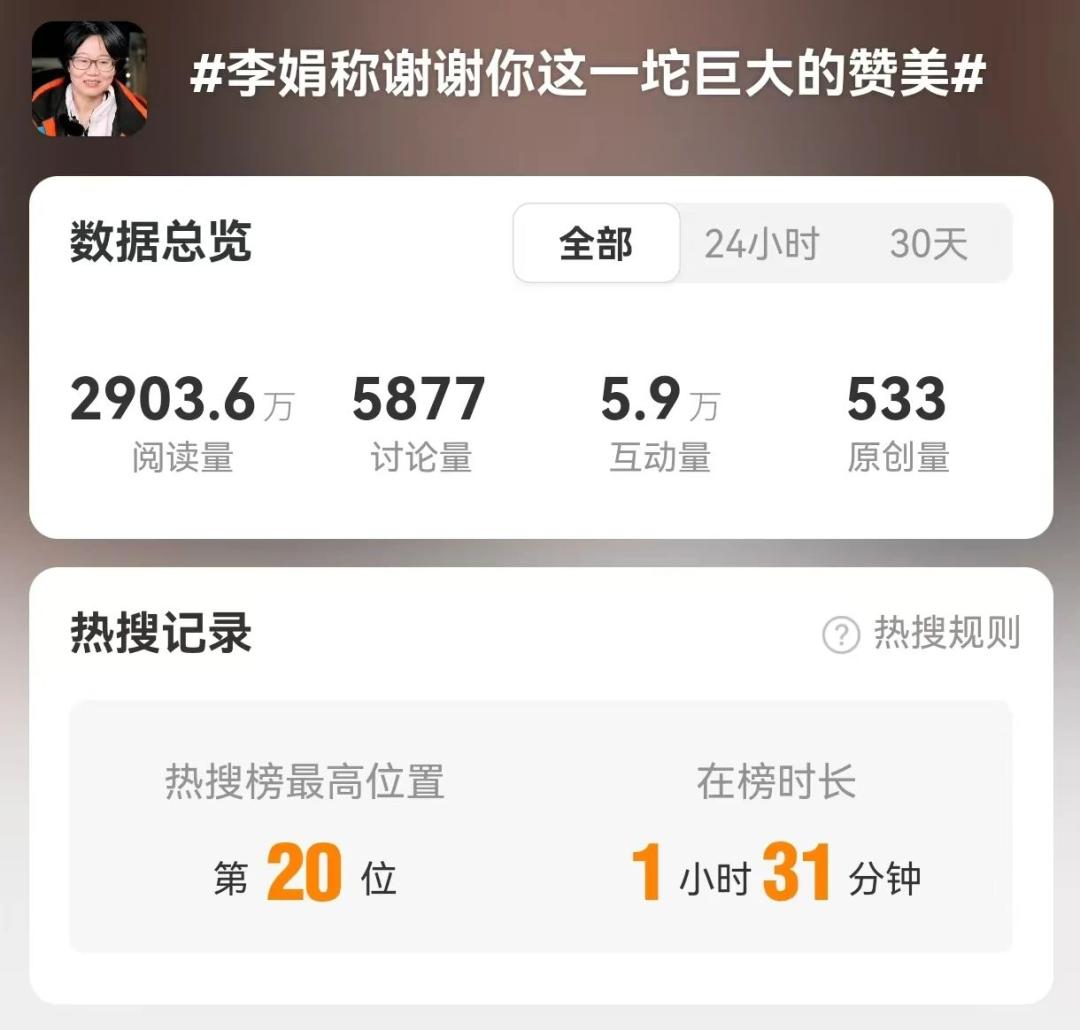 实在是让包括李娟在内的所有人都不明所以。因此,才有了直播中,李娟在说出“巨大的赞美”之前那长达2秒钟的沉默。