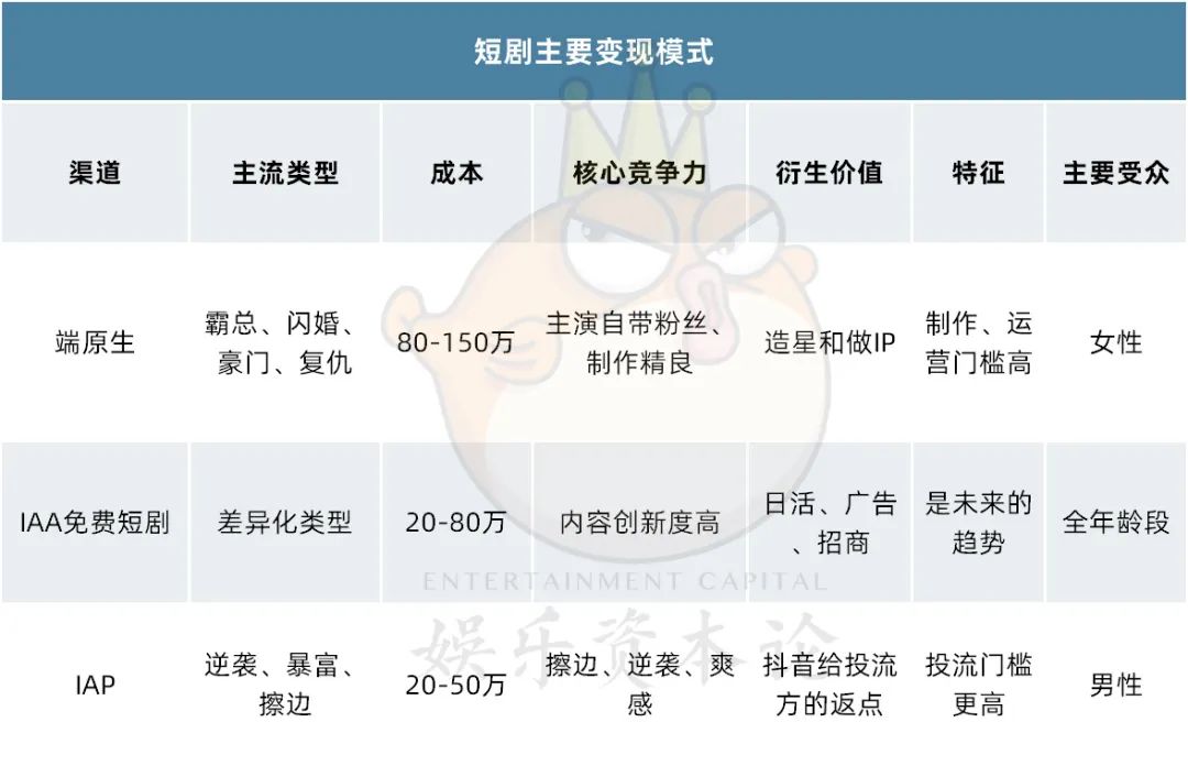 是的,短剧仅仅半年,就从原先的小程序充值,发展到了端原生、IAA 、IAP等更多元化的商业模式。