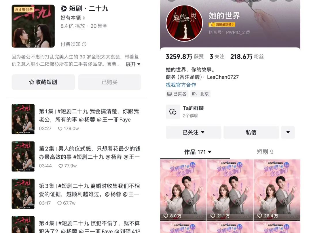 “老公是出轨不忠的,闺蜜是能两肋插刀的,孩子一定是心头肉,工作必须支棱起来,再配上一个又奶又甜的狼系小男友守在自己左右。你说,哪个女孩不想过这样的人生呢?”山西太原的短剧用户林妙可,每周至少看一部短剧,百看不腻,被问及平时看到的内容时,她如此说道。