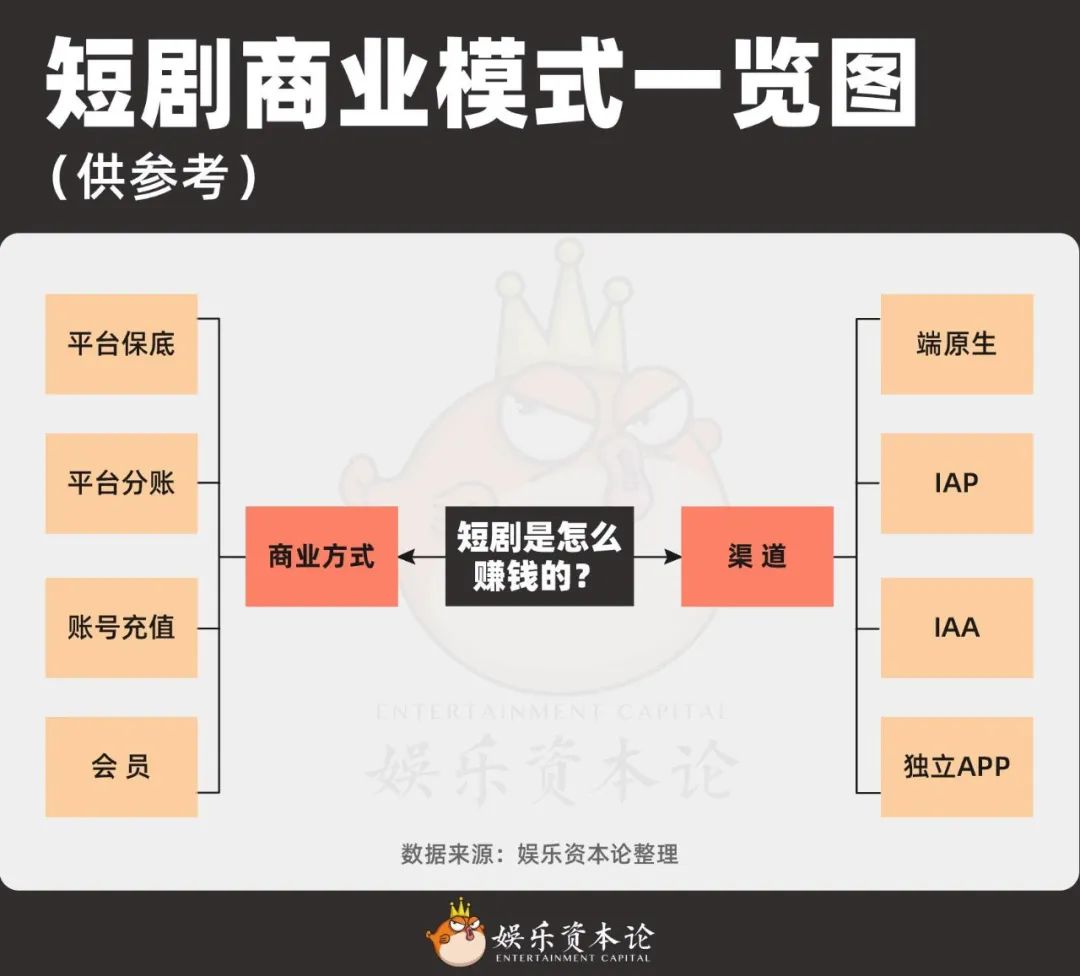 去年,短剧行业由最初的IAP即小程序投流回收成本,衍生出了端原生、IAA等多种商业模式。