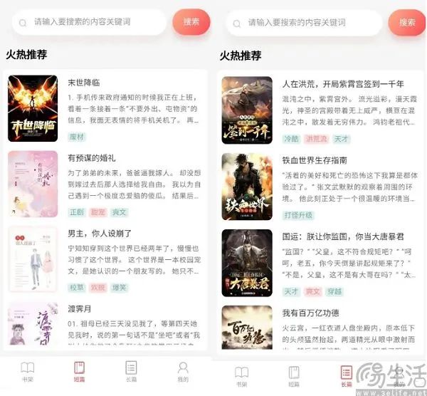 相比于起点、晋江、番茄小说等传统网文平台,小红书的阅读版块在设计上相对简约,目前只有“短篇”和“长篇”两个栏目,作品下方的分类标签,则覆盖重生、仙侠、甜宠、穿越、玄幻等题材。