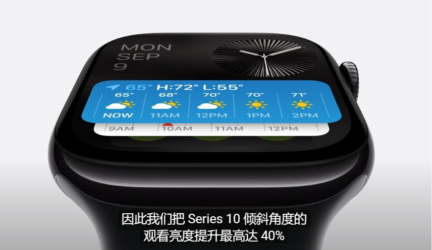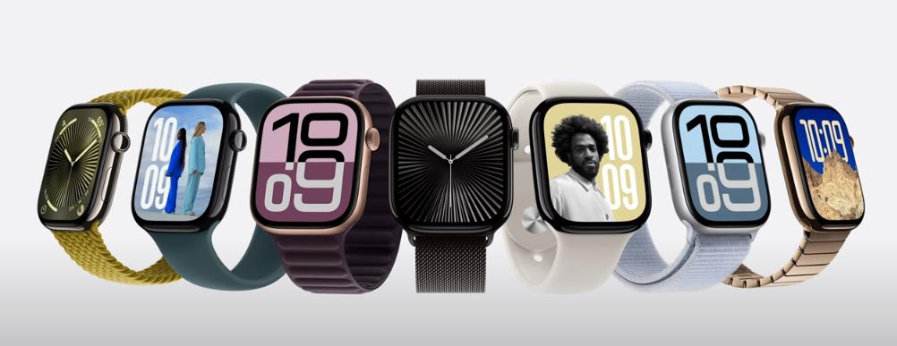 本次Apple Watch Series 10提供亮黑色、银色、玫瑰金三种配色,采用了抛光铝金属外观。并且还推出了钛金属版本,提供原色、金色和石板色,重量比前代减轻10%。