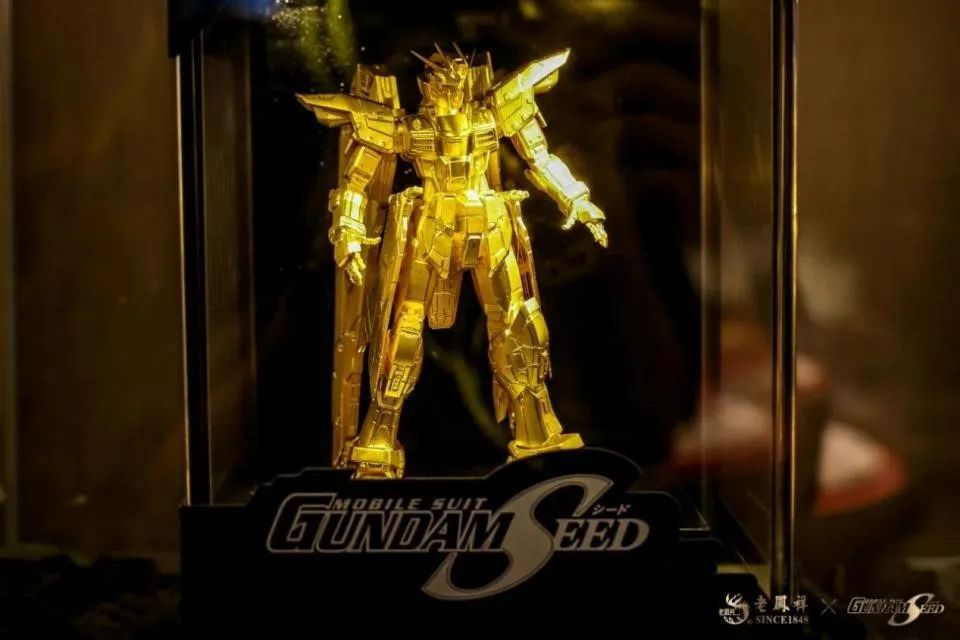 老凤祥亦是跨界联名的老牌玩家,曾与野兽派、《崩坏:星穹铁道》《冒险岛》联名。近期,又联名万代南梦宫,推出价值88万元的黄金高达。