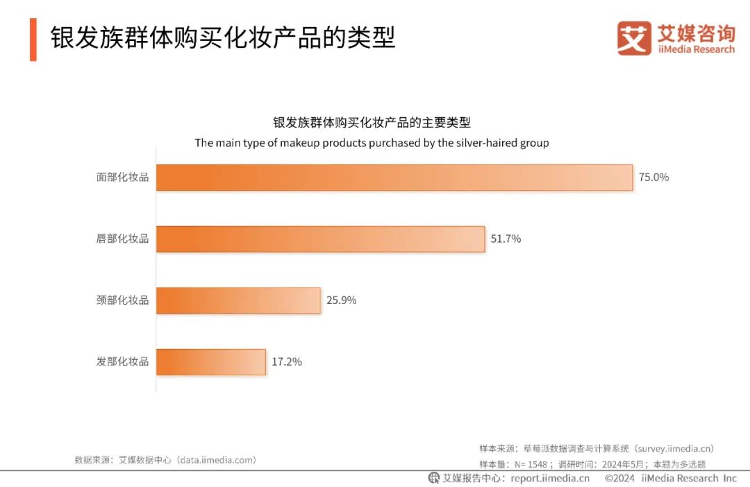 《2023年美妆新趋势洞察报告》显示,在抖音平台,“给妈妈化妆”话题持续高涨,播放量突破5000万次。艾媒咨询数据显示,超七成银发族首选购买面部化妆品,其次是唇部化妆品。一线城市的50~70岁的老年人中,几乎都会护肤化妆。