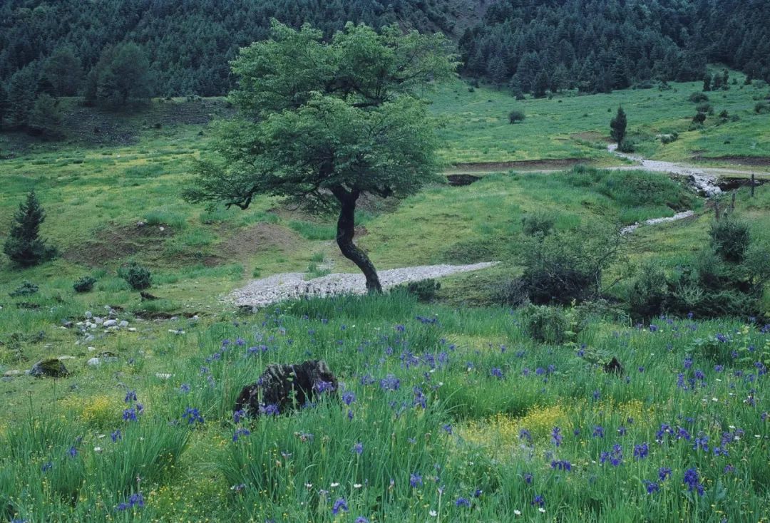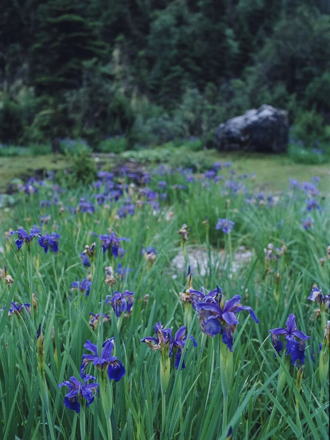 最先进入视野的是成片的野鸢尾,蓝到发紫。它修长的花瓣耷拉着,与黄色的报春花一同点缀着这片无人之境。而原始森林那出世的神秘感,天然地吸引着人踏足,只为一探究竟。