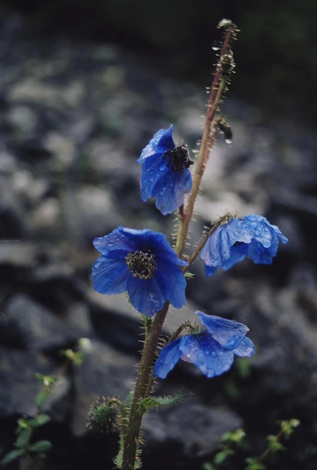 如果你细心观察丛林的角落,说不定还能遇到藏在石头缝隙里的绿绒蒿。它们或直立或弯曲的茎干上长着蓝紫色的花瓣,上面还挂着露珠。许巍的歌曲《蓝莲花》,唱的正是这种植物:“清澈高远”“永不凋零”。