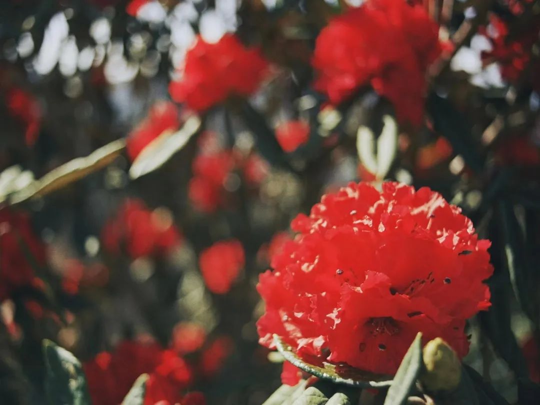 今年,它的花期来得早些,2月底就已经盛开。与城市里常见的灌木状杜鹃不同,马缨杜鹃呈树状,不仅枝干高大许多,就连花朵大小也如海碗一般,再加上花瓣鲜红如血,当它成片开放后,称得上是气势如虹。