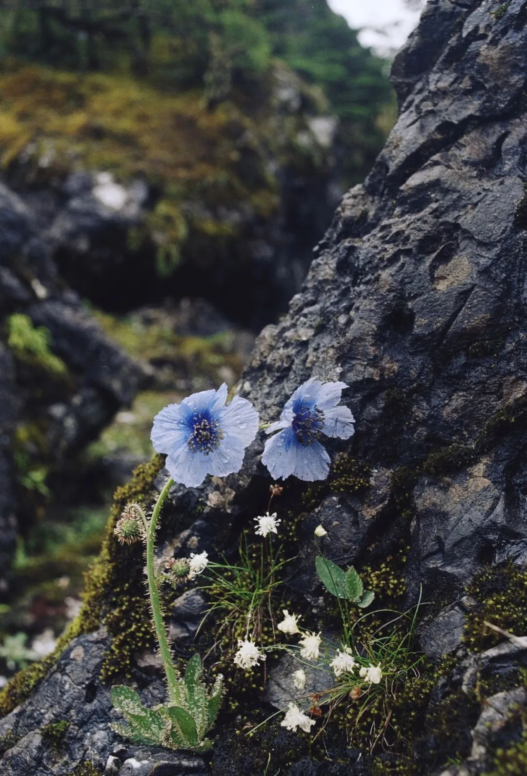 比野鸢尾与报春花更令人惊艳的是绿绒蒿。不像前两者那样触手可得,绿绒蒿往往藏身于石头缝里,或是其他不起眼的角落里。