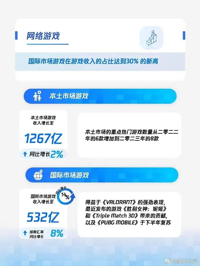 2023年,腾讯的游戏业务收入达1799亿元,占总营收的29.5%。虽然降低了占比,但游戏仍是它的顶梁柱。