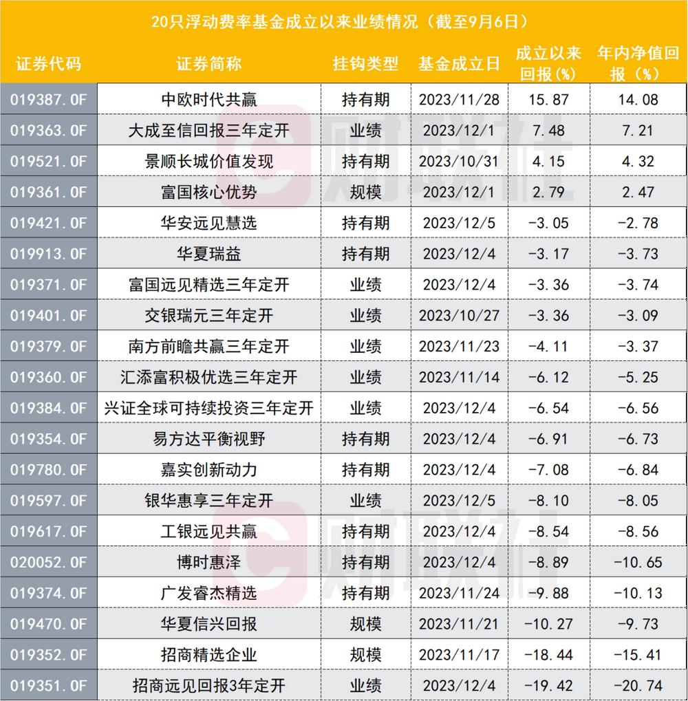 但整体来看,20只浮动费率产品仍是多数下跌,除了前述产品,剩余的16只下跌基金中,截至9月6日有12只成立以来跌超4%,3只跌超10%,跌幅最大的一只成立以来亏幅在20%左右。