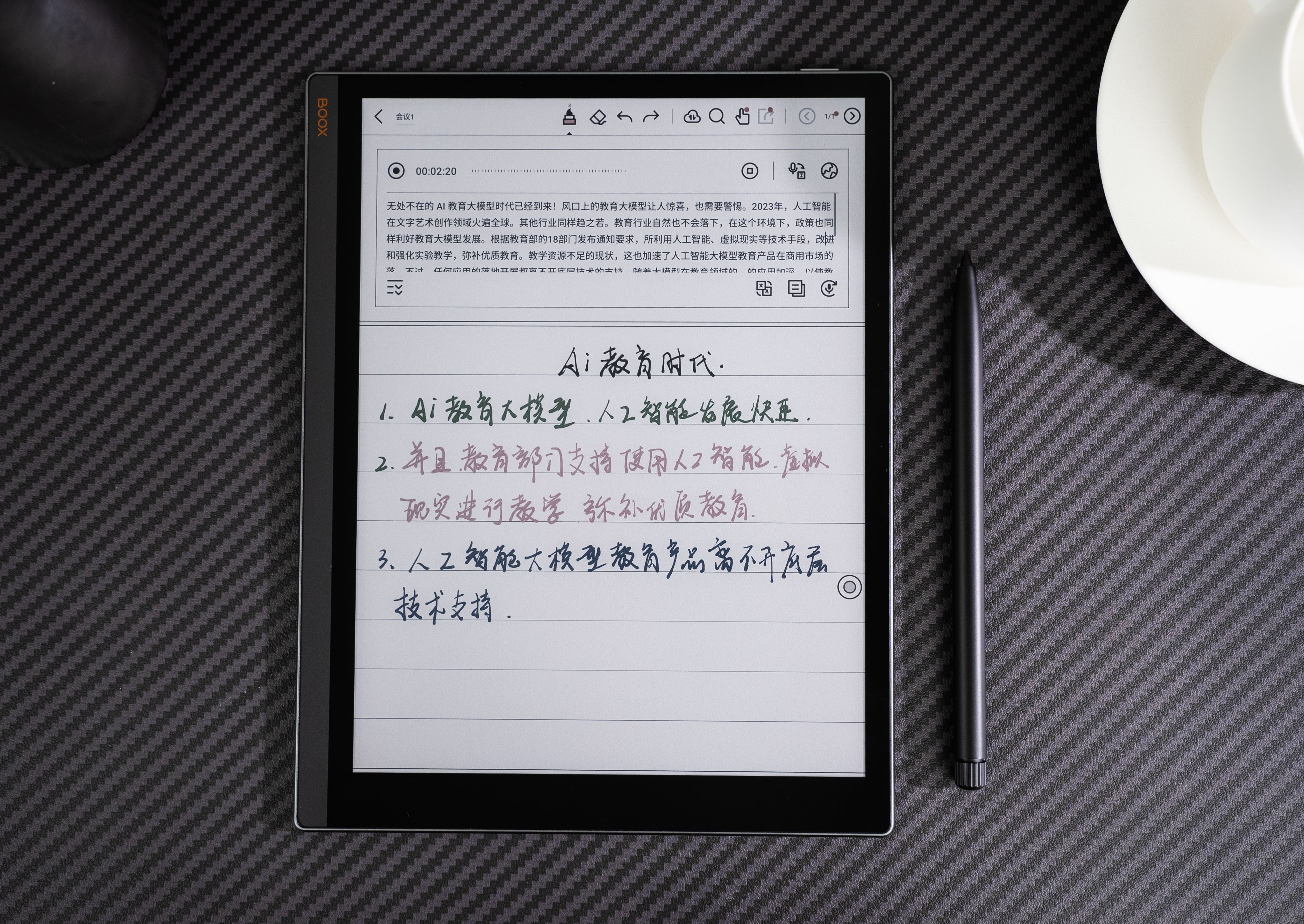 语音转文字是文石墨水屏另一项核心功能,不仅能应对中文,还支持多语言转录。如今在会议记录过程中也会让大模型介入,输出的效率更高,语义更加清楚。