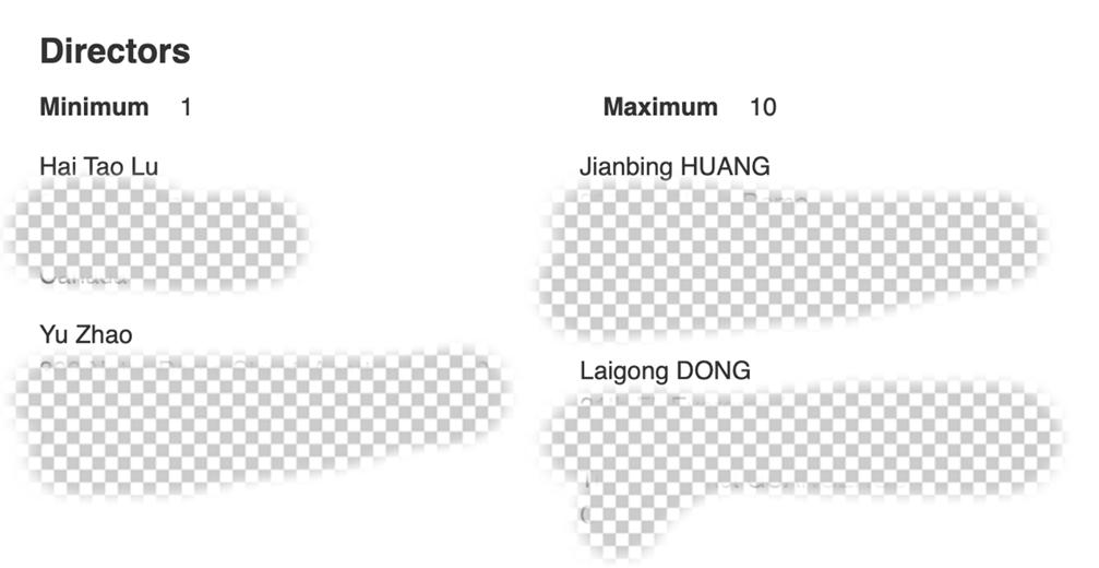 把蒙德贝罗城堡酒店QC J0V 1L0长期作为自己住址的Jianbing HUANG,真正的身份是两间公司的董事。和他一起担任这两间公司董事的还有另外三个人,他们的名字也都有着明显的汉语拼音特征:Yu Zhao、Hai Tao Lu、Laigong DONG。