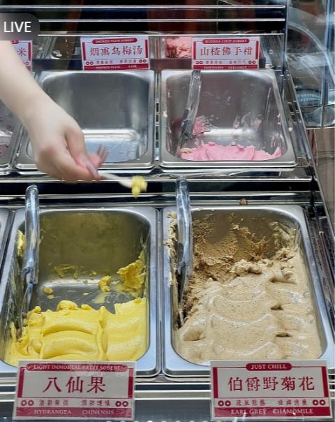 目前最火的Gelato,也乘上了中药的风口,融合了中药材的冰淇淋,看起来其貌不扬,但里面都是川贝、姜汁、乌梅、野菊、八仙果、软枣、决明子、黑糯米等养生食材。
