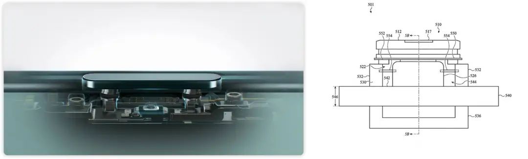 苹果为这颗按键设计了一个磁性结构,使其更加紧凑,当电磁体被激活时,磁铁会旋转,从而旋转输入结构,向用户传递触感反馈——这个旋转按钮的位移只有不到 10 微米,只有传统圆顶按钮二十分之一,但足以营造一种「操作感」。