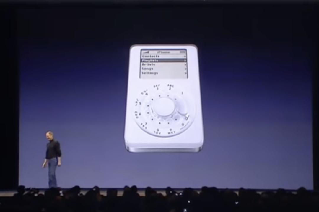 苹果在设计手机之初,有两个方案,其中一个是延续 iPod 的设计,用滚轮替代键盘,但苹果无论如何也没法解决输入效率的问题。
