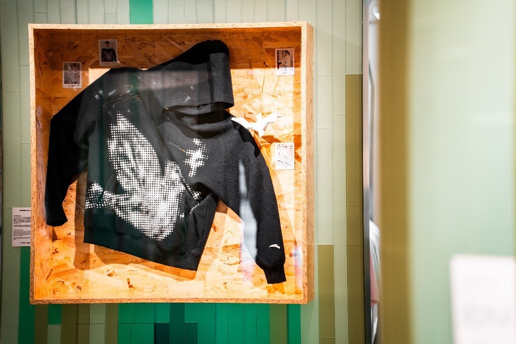 除了三位艺术家的作品以外,“溯源与新生”可持续艺术快闪展以绿色为主视觉色彩,通过鸽子、竹林等元素共同呈现可持续的视觉效果,展陈装置也均由环保材质制成,落实安踏0碳使命店的核心理念。安踏品牌全球首席代言人王一博应邀呈现亲笔签名版和平鸽卫衣,邀请更多人与安踏一起共同关注可持续发展,实践可持续生活方式。