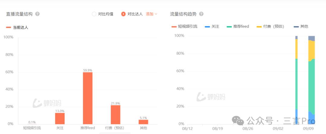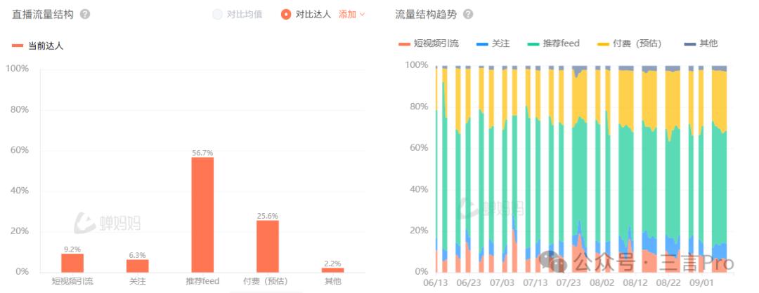 直播流量结构显示,预估其付费流量占比为25.6%。