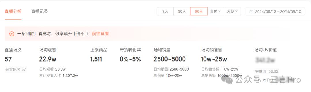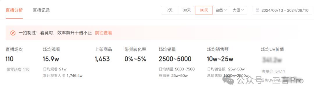 近90天学而思优品开播57场,场均观看22.9万,总销量10万-25万,场均销售额10万-25万,总销售额1000万-2500万。