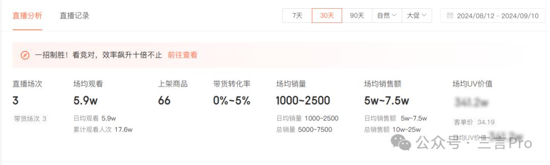 此外,二者场均销售额均为10万-25万。所以二者在直播带货上的表现差别不大。