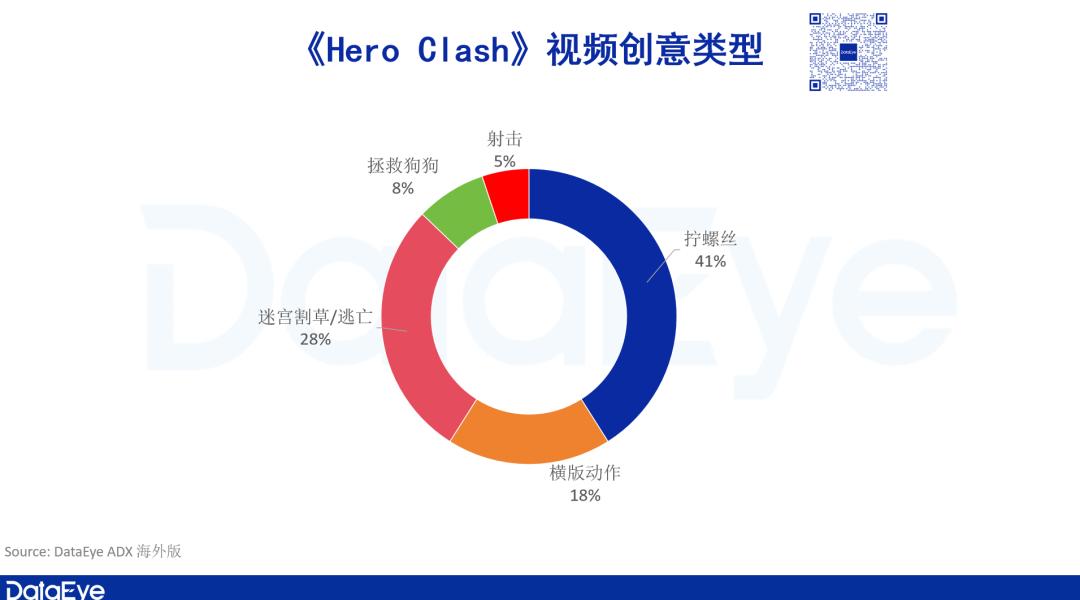 在这些副玩法中,《Hero Clash》采用最多的拧螺丝的玩法,偶尔搭配美女素材,此类素材占据了41%;比重占第二多的迷宫割草类玩法,主要体现休闲割草快感,此类素材占了28%;占比第三多的是横版动作类玩法,同时加入了如《真人快打》等知名IP人物,引起美国市场用户的共鸣。