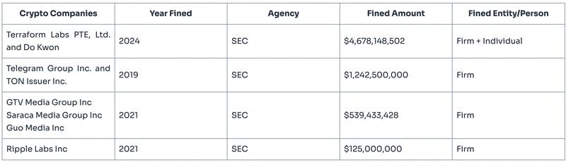 天价罚单:4 个加密货币项目累计罚金高达 65.8 亿美元