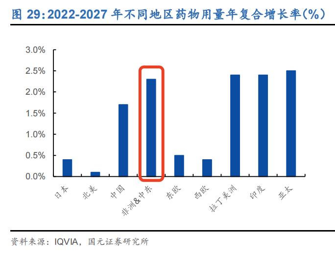 非洲&中东药物用量年复合增长率显著高于成熟市场