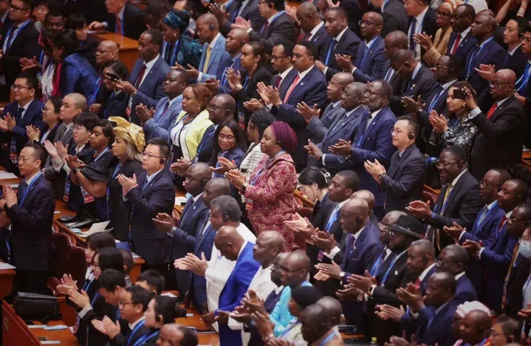 9月5日,人民大会堂,中非合作论坛北京峰会,参会人员起立鼓掌。图源/新华社