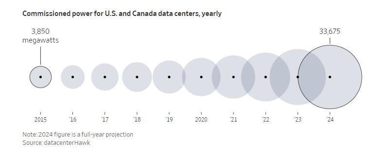 自2015年以来,美国和加拿大的数据中心向能源公司订购的电量已激增近九倍,这一趋势直观反映了人工智能发展对数据中心电力需求的急剧增长。