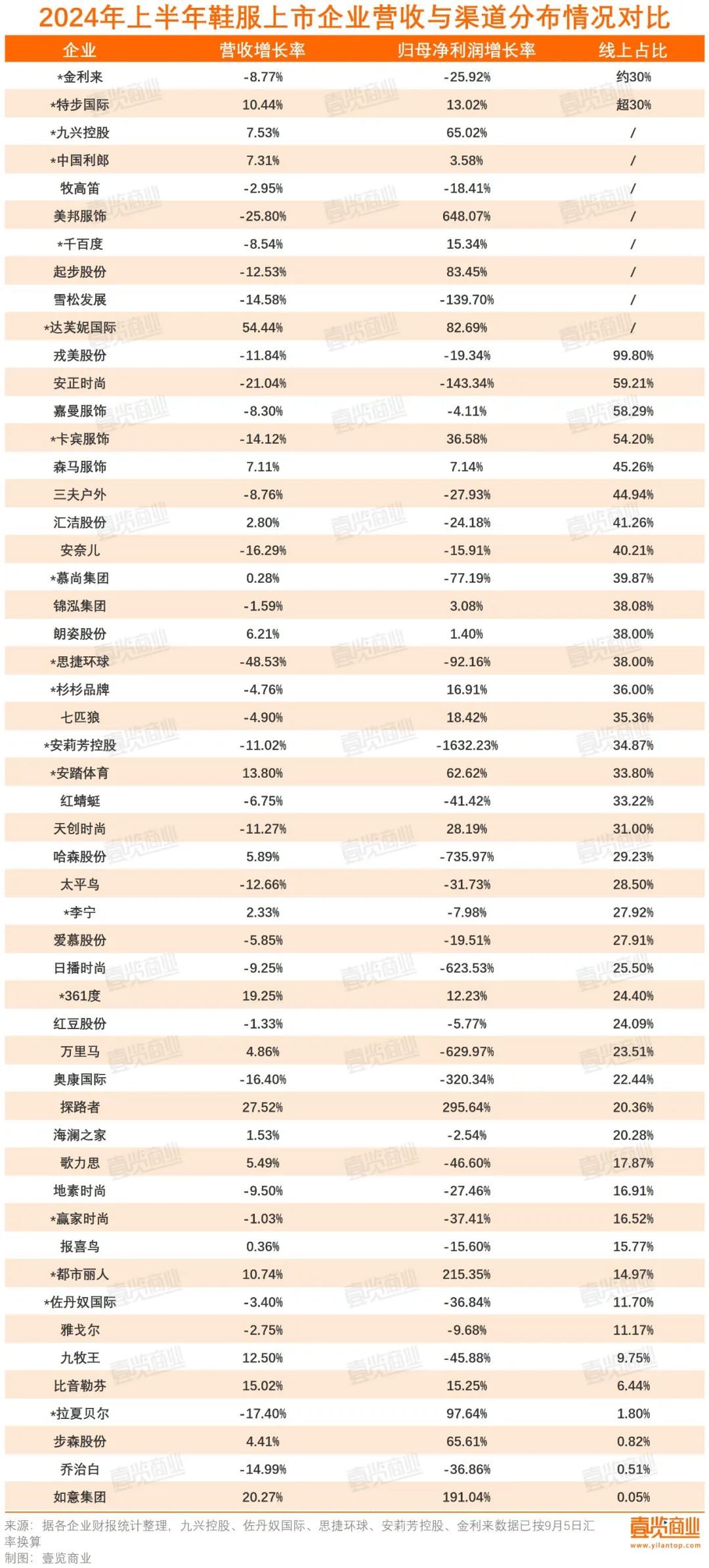 截至9月,主要的上市鞋服企业都已发布了2024年半年报,壹览商业统计了52家上市鞋服企业的上半年业绩,看看鞋服行业表现如何。