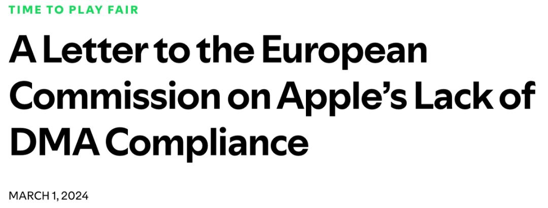 虽然Apple Store因为监管倒逼确实意思了一下(前文已经讨论过,韩国地区的调整并不能称得上是让步),但很快以Spotify为首的欧洲软件公司,联名向欧盟委员会发出抗议信,指出苹果对于Apple Store规则的调整,仍然不符合DMA的有关规定: