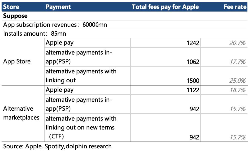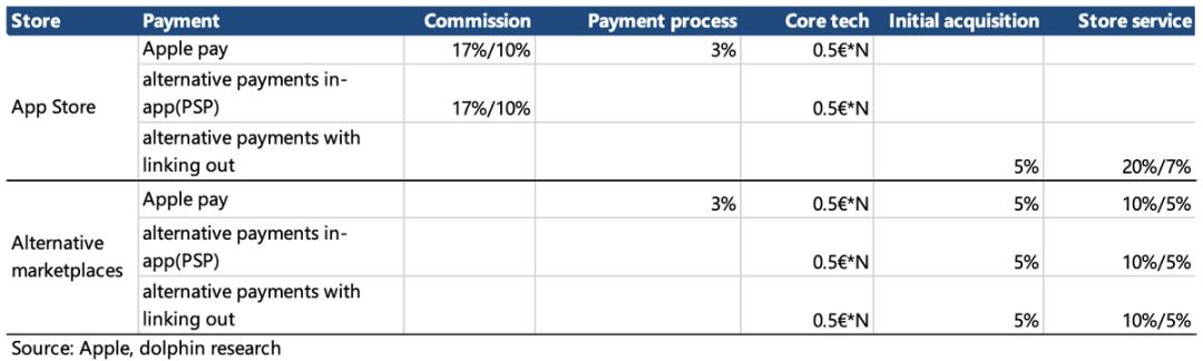 参照欧盟地区的调整(17%~25%),海豚君预计有望在30%基础上,苹果初步让出5pct~10pct的优惠空间,即抽佣比例在20%~25%区间。