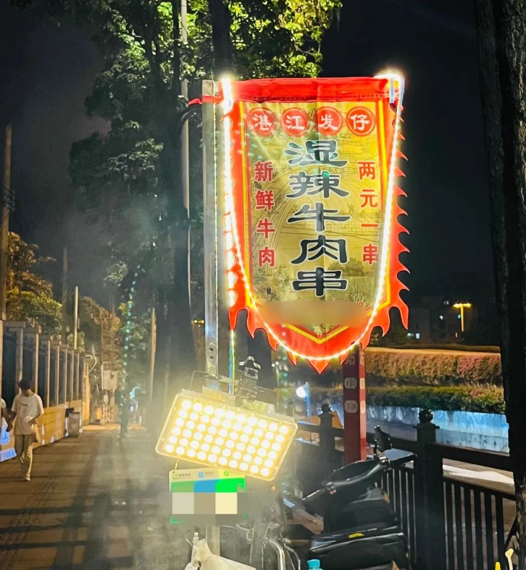 在广州,红餐网注意到,近2个月,在白云、番禺、天河、海珠、花都等各区都有出现了2元烧烤。像海珠区的城中村—— 客村附近,已经有不少于4家卖烧烤的摊位,这些摊位都叫“XX湿辣牛肉”,只卖2元一串的牛肉 。家住客村的白领盼盼告诉红餐网,其中一个网红小摊“阿振湿辣牛肉”每晚都排长队,晚上7点开摊就能排到60多号。
