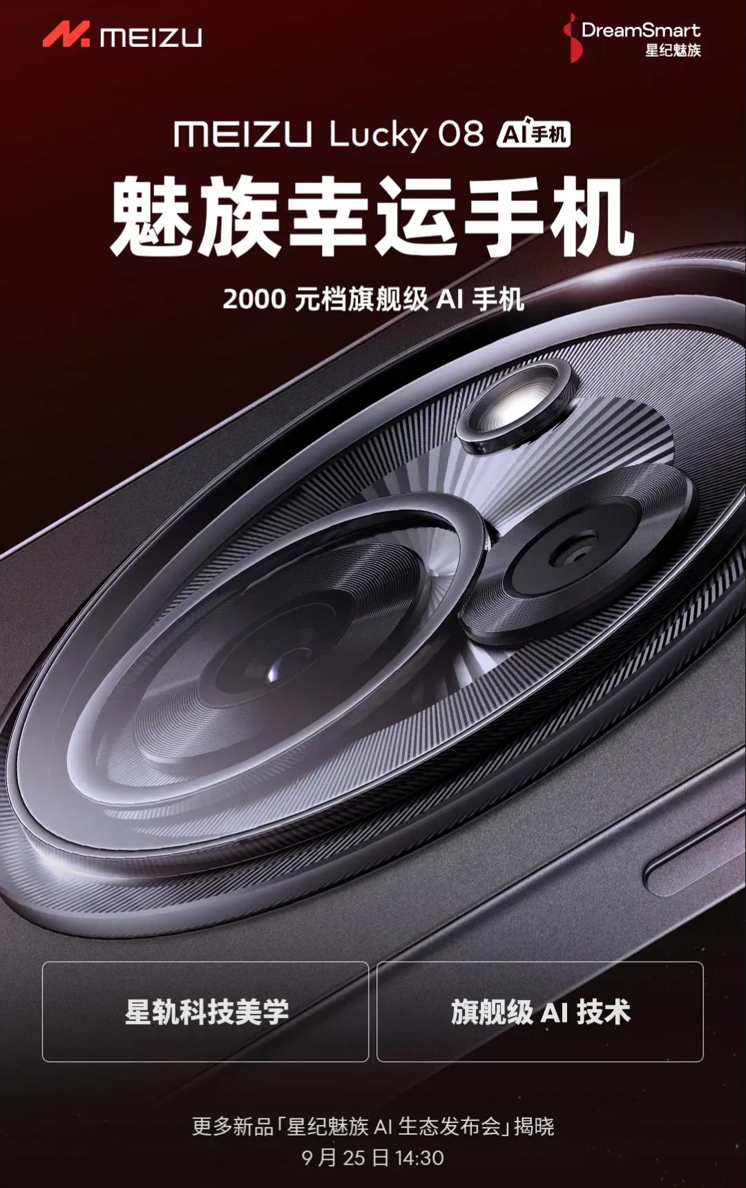 到了这两天,魅族算是正式拉开了 Lucky 08 的宣发行动,明确将在 9 月 25 日举办发布会,并且放出了背面的 Deco 设计。