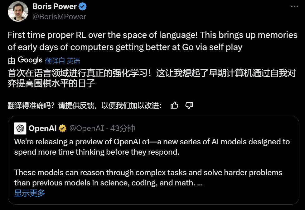 也就是从方法上,o1 大模型首次证明了语言模型可以进行真正的强化学习。