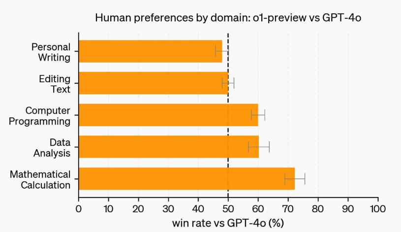 在需要更强大推理能力的领域,人们更青睐 o1-preview。