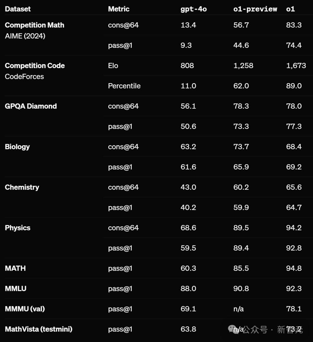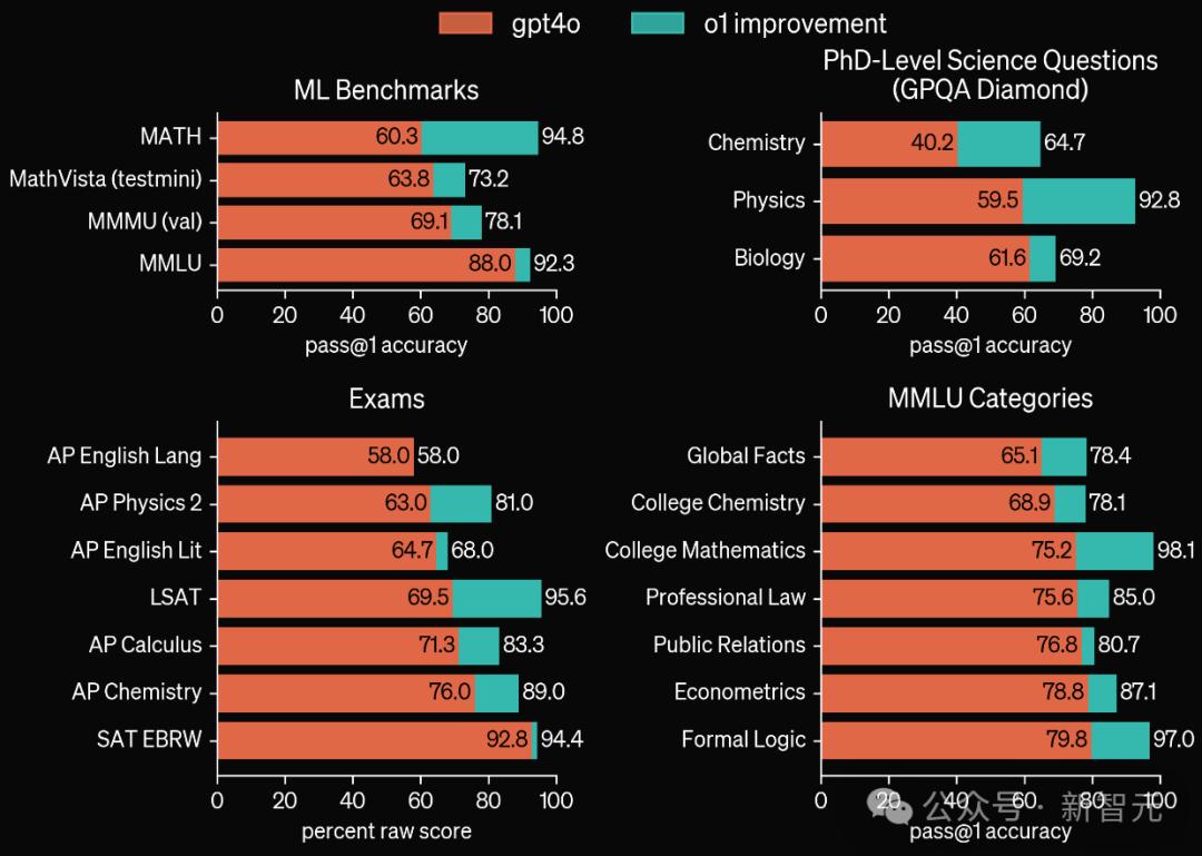 在具有挑战性的推理基准测试中,o1大幅超越了GPT-4o