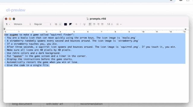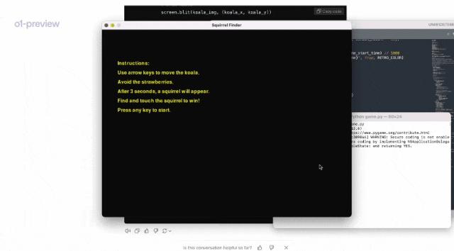 在另一个demo中,Jason Wei向我们展示了,o1是如何根据提示,就编写了一个视频游戏。