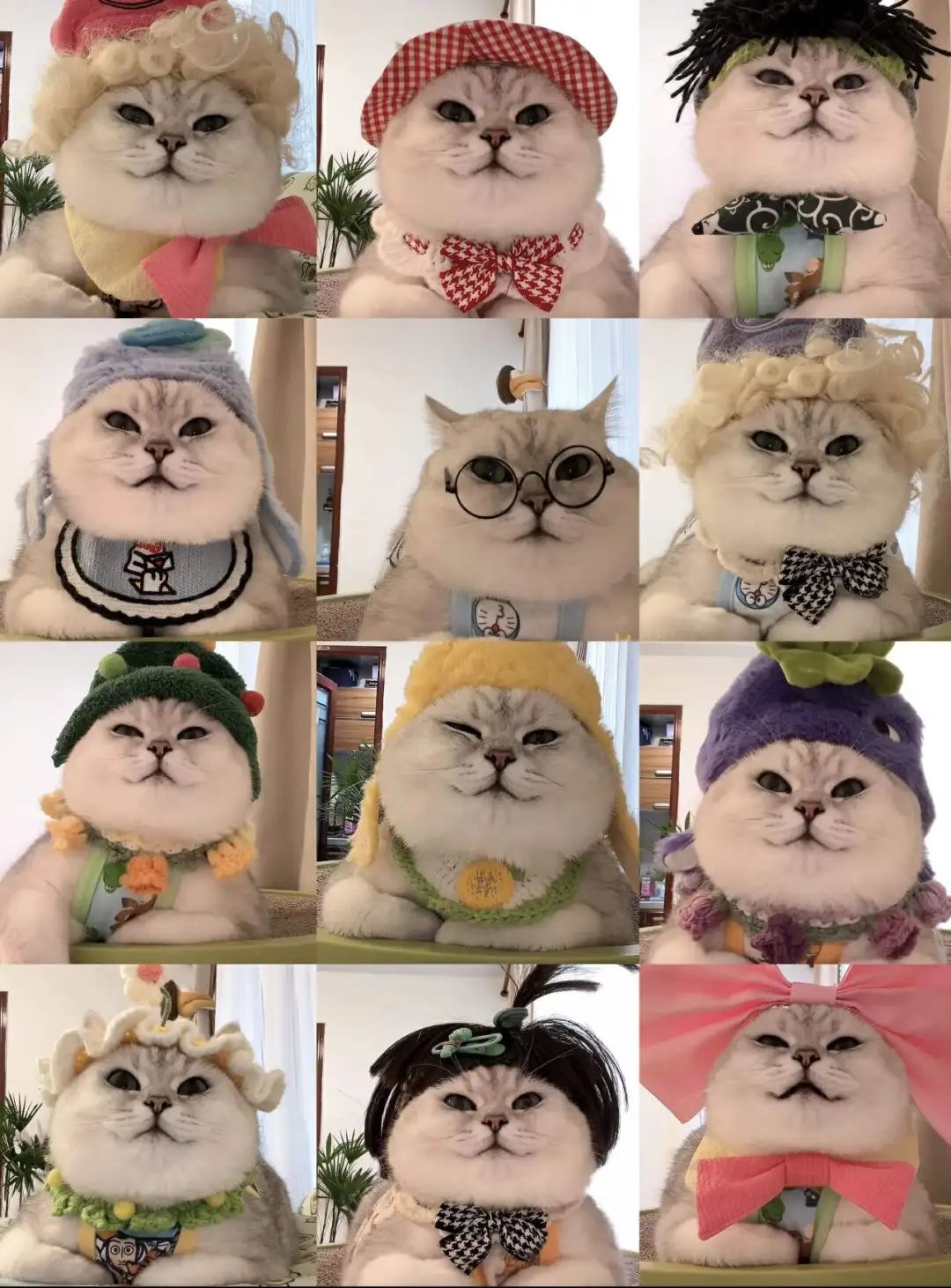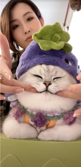 这职业假笑便是芬儿头的标志性表情,哪怕内心不情愿,但只要有猫粮冻干,随便什么造型任由装扮,10086套cos也能轻松拿下。
