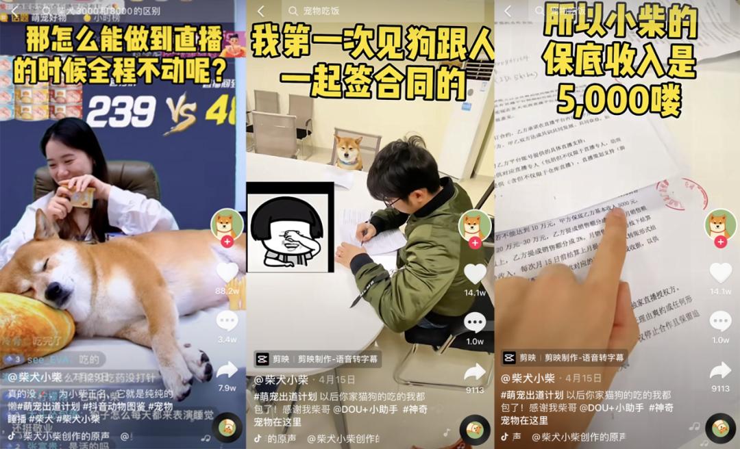 2021年8月,“柴犬小柴”直播间的单月销售额超过100万。与其合作的直播公司也给出不菲的待遇:若当月销售额不能达到10万元,小柴的保底收入是5000元,若销售额达到20万以上,每个阶段会有不同比例的销售额分成。