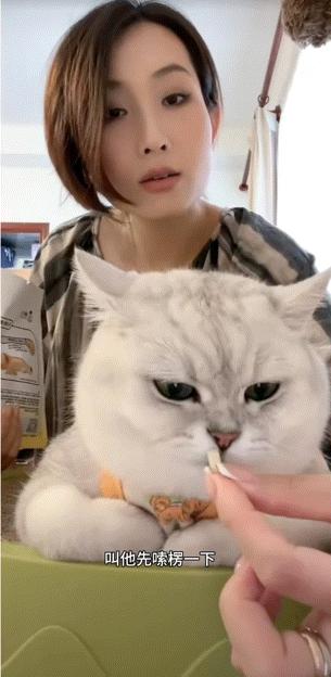 关键时刻,还得是吃的管用。只见芬儿妈从一旁掏出一袋猫零食,从中取出3颗排排坐摆在芬儿头头顶,“人机小猫”顿时满电上线,乖巧地一动不动配合营业;