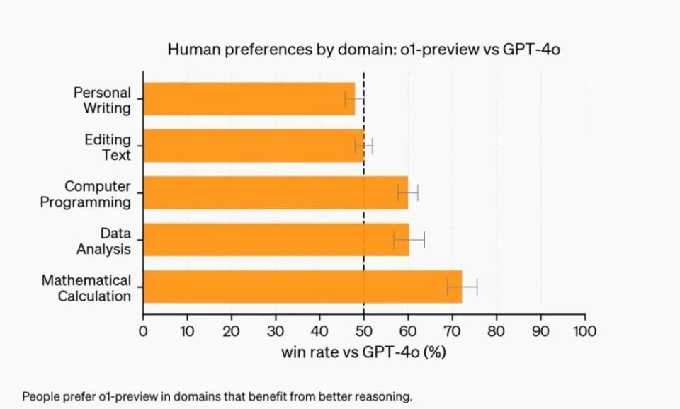 (o1-preview、o1-mini和人类能力对比,来源:OpenAI)
