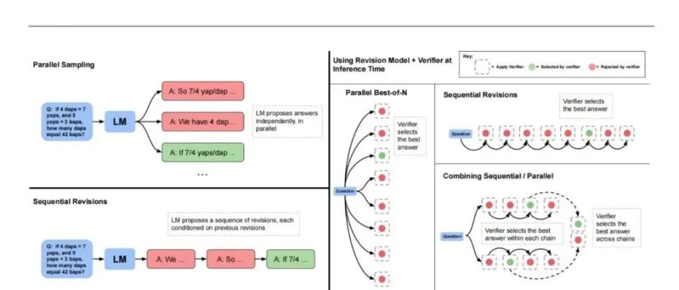 虽然OpenAI没有详细的技术文档,但它的老对手谷歌在8月发布的一篇文章《Scaling LLM Test-Time Compute Optimally can be More Effective than Scaling Model Parameters》,提供了这种新的SelfPlay RL范式的一些基本框架和实现可能。