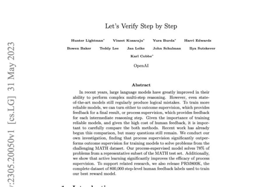 虽然谷歌的文章是在8月份发布的,但关于PRM的早期探索,实际上还是要回归到OpenAI。早在2023年5月,Illya和其团队就已经思考出了PRM,并发明出了这一结合思维链及监督者为一体的强化学习方法。
