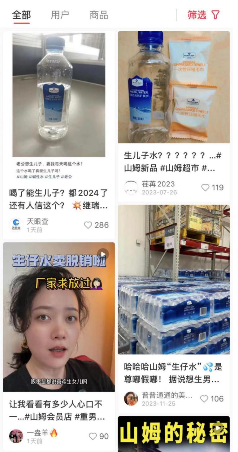 面对这一传言,山姆商超不得不站出来辟谣。他们表示,对于喝这款矿泉水能生儿子的说法毫不知情,也没有科学依据。