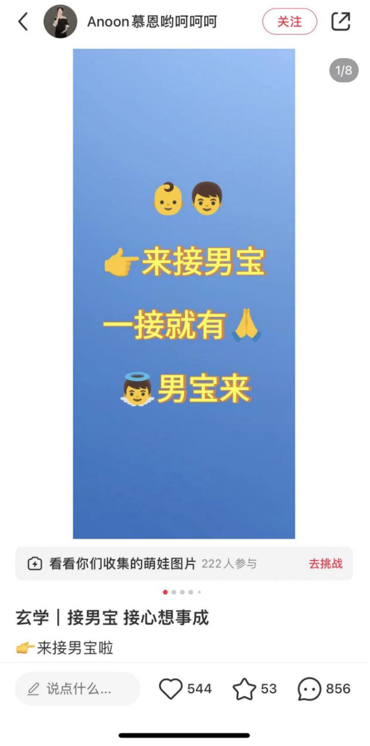 在社交平台上,备孕的妈妈们热烈讨论着这款“生儿子水”的功效,甚至总结出了一套如何让这款水更有效的攻略:让爸爸喝,且最好持续半年以上,因为他们是Y染色体精子的提供者。于是,“喝了能生儿子,爸爸喝功效明显”的传言不胫而走。不过这种传言并没有什么证据,更多的是带着一种情绪价值消费。